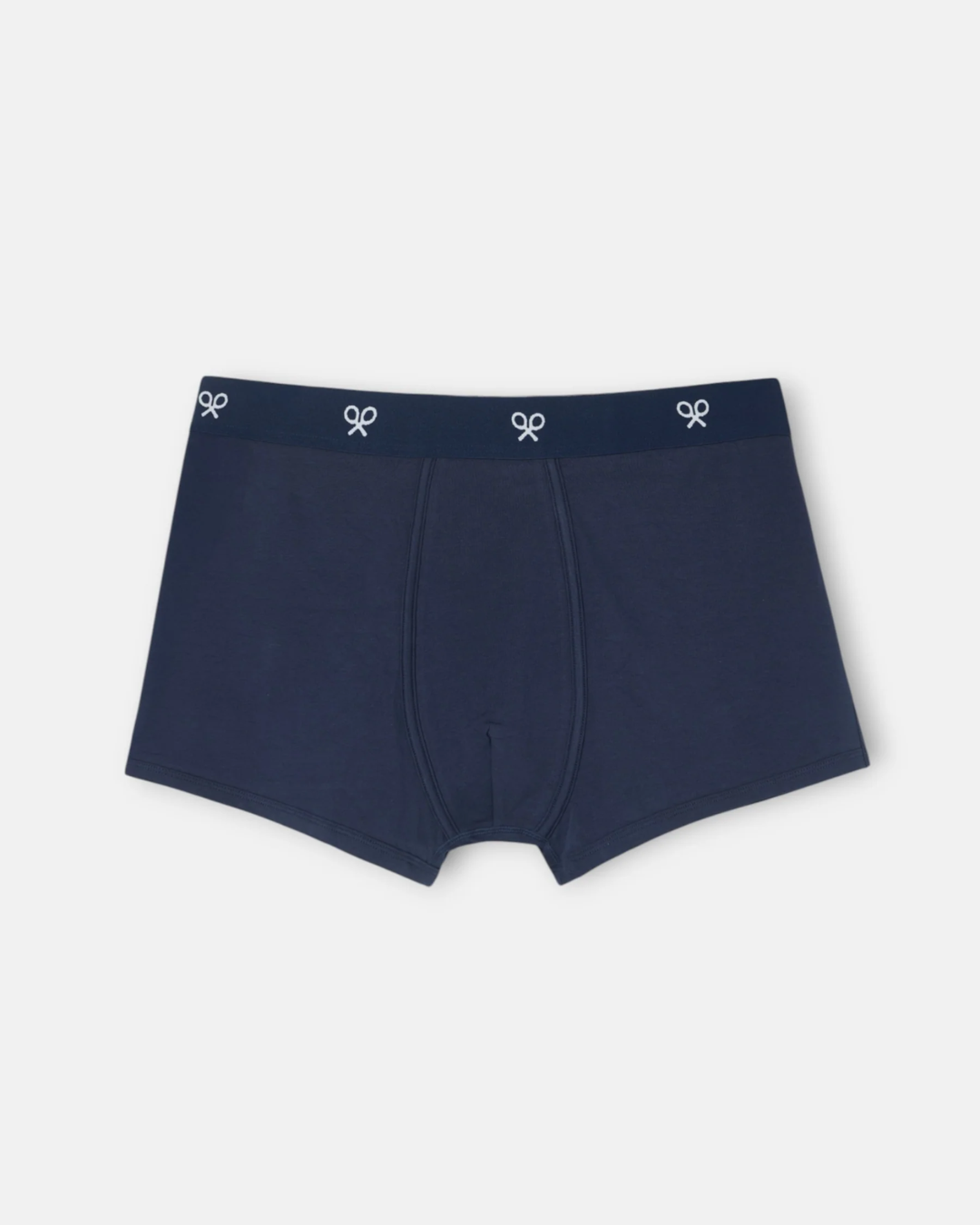 Plain navy boxer shorts.