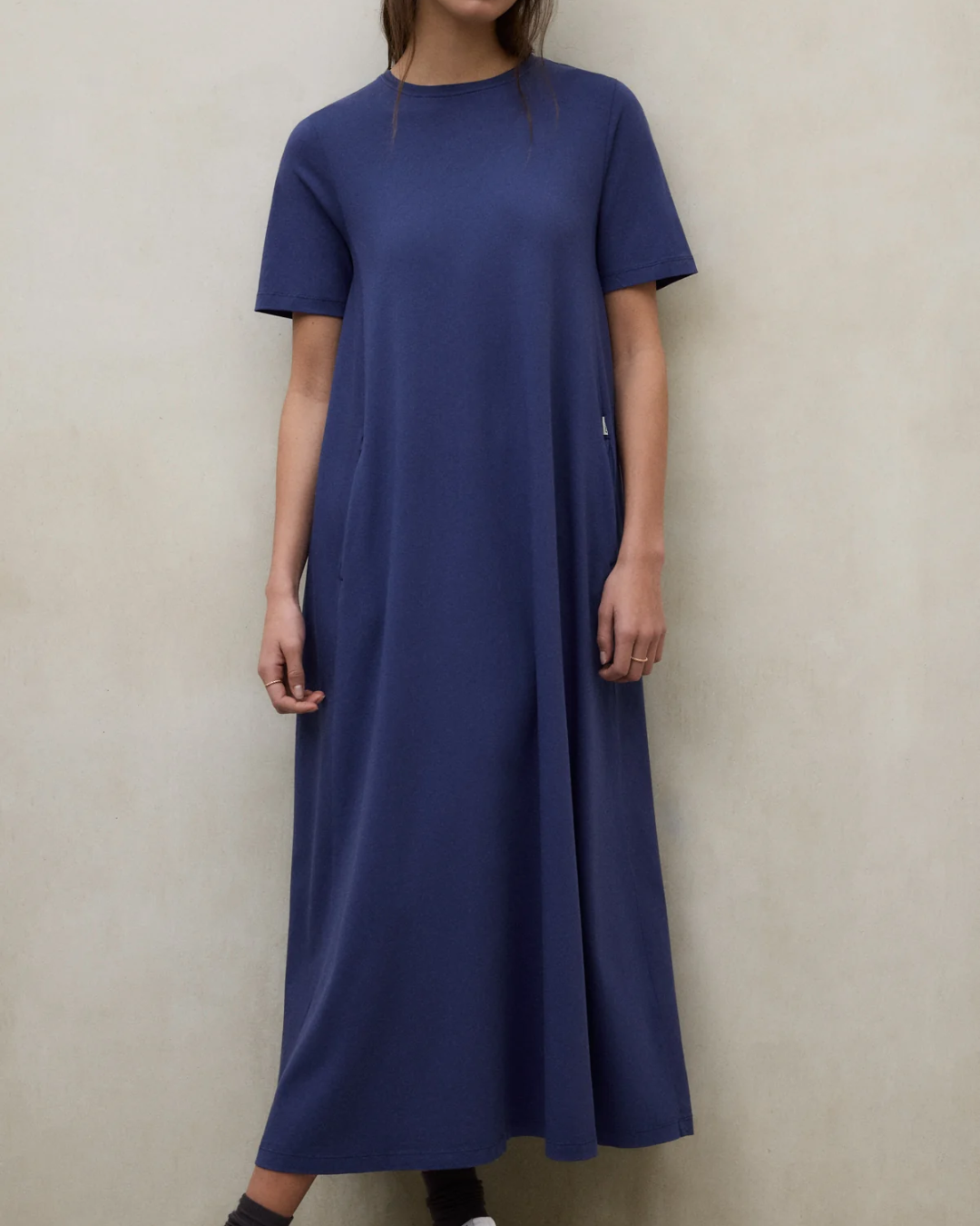 The Elettra Dress is made of 50% organic cotton. Relaxed fit. Short-sleeved. Round neck and side pockets.