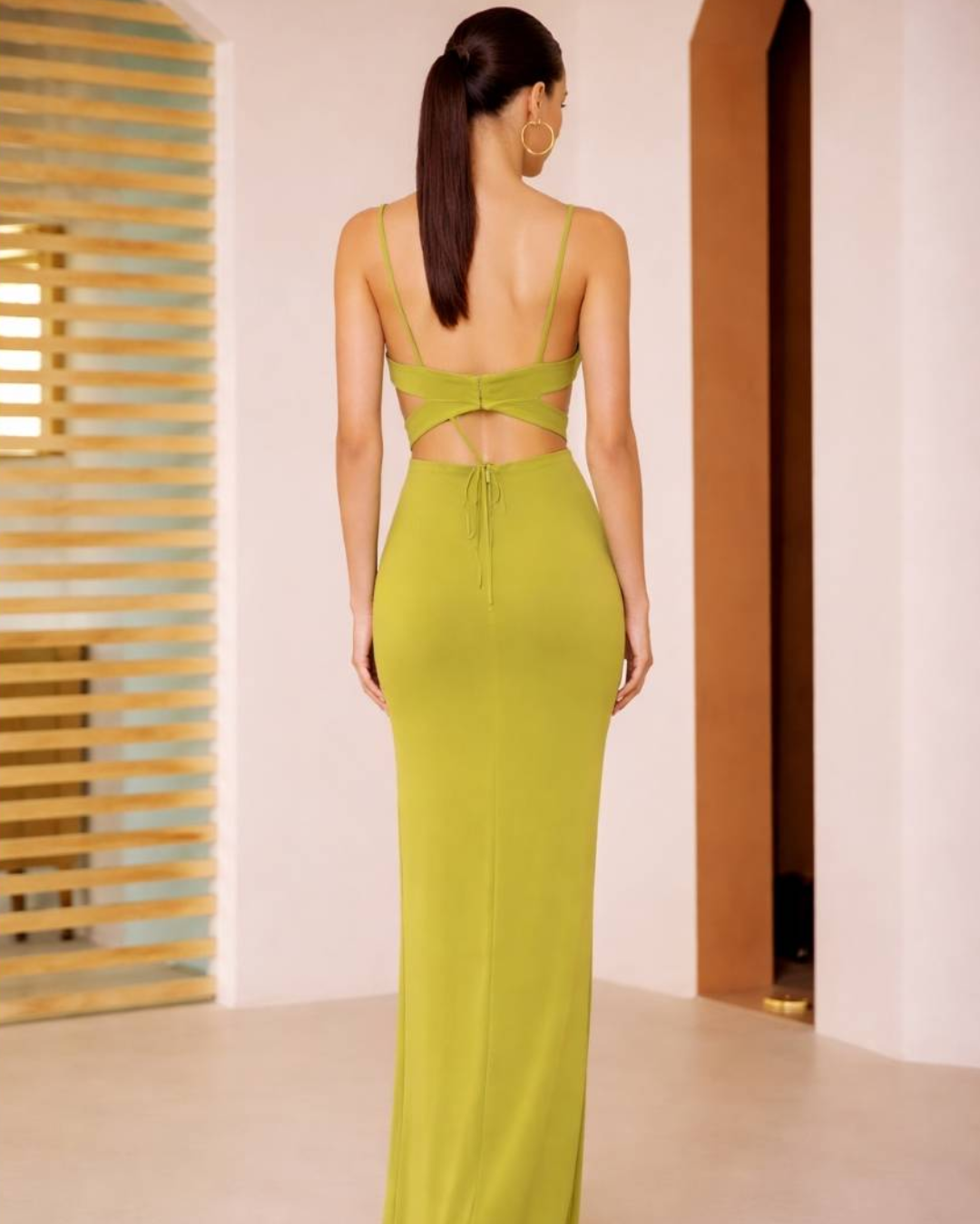 The back is one of its most striking features: the open back creates a very flattering effect, while the fitted waist elegantly accentuates the figure. The design combines simplicity and sensuality, making it a perfect choice for special events where you want to stand out with style and personality.