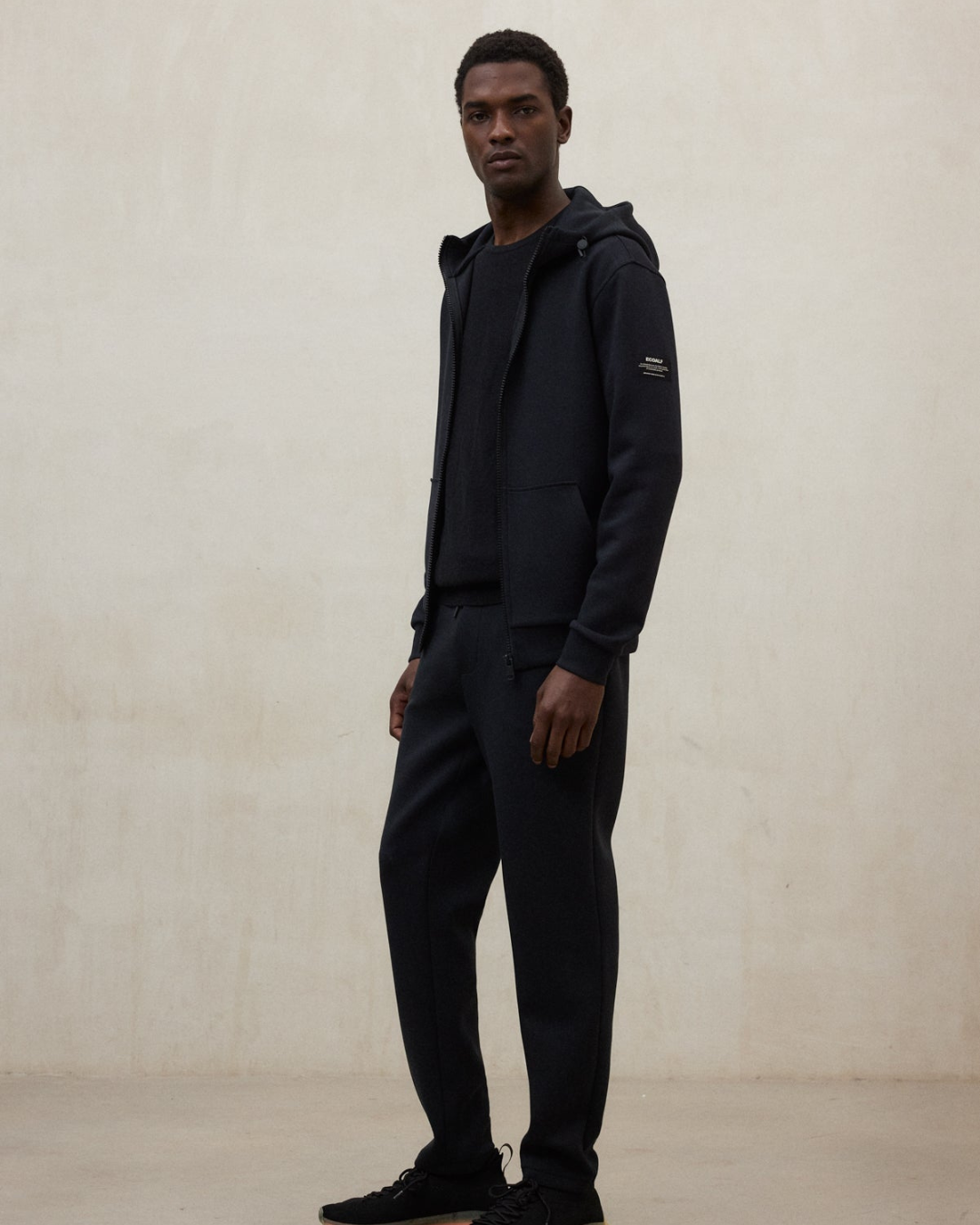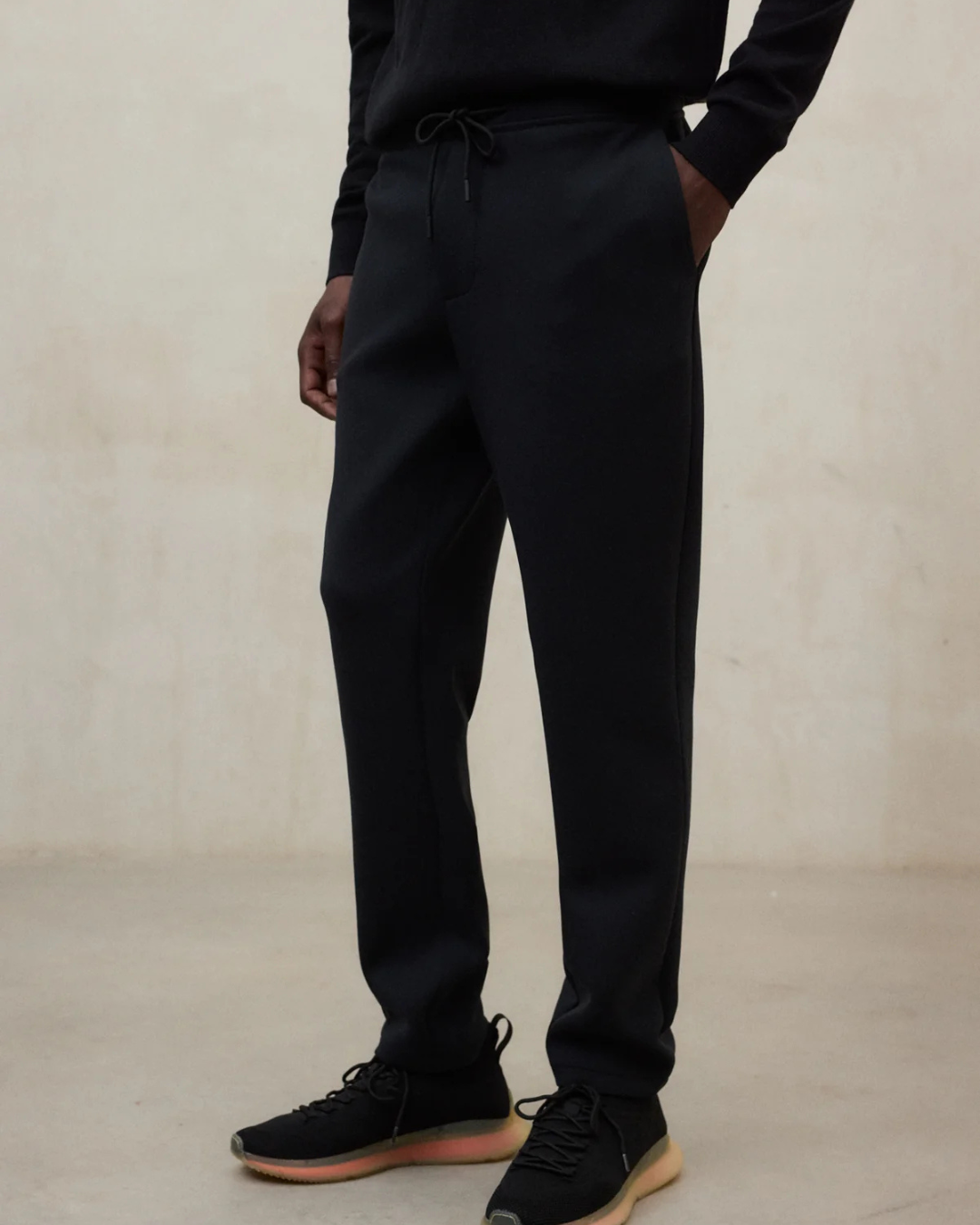 The Ethic Neo trousers are made of 75% recycled Polyester, 16% Viscose and 9% Elastane. They have a 100% organic cotton lining. Recycled polyester cuts down on the use of fossil resources, CO2 emissions, and water and energy consumption by reusing plastic waste such as PET bottles, while maintaining the properties of virgin polyester.