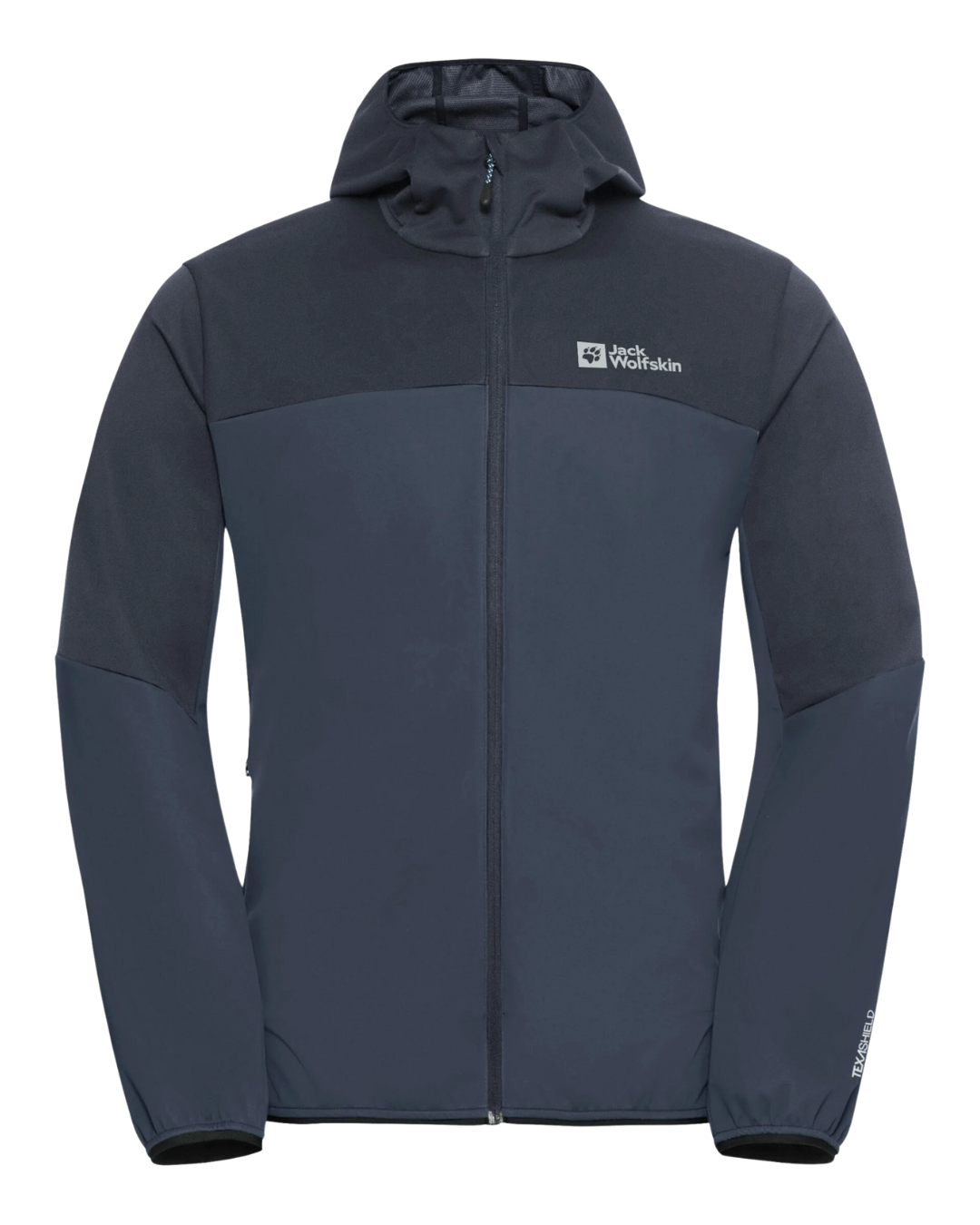 The FELDBERG HOODY for men is a versatile layer for hiking adventures or city streets. Highly breathable TEXASHIELD PRO SINGLE JERSEY fabric offers windproof and water-repellent protection. The fixed hood adds extra coverage as needed. A pair of hip pockets stow small essentials or keep hands warm.