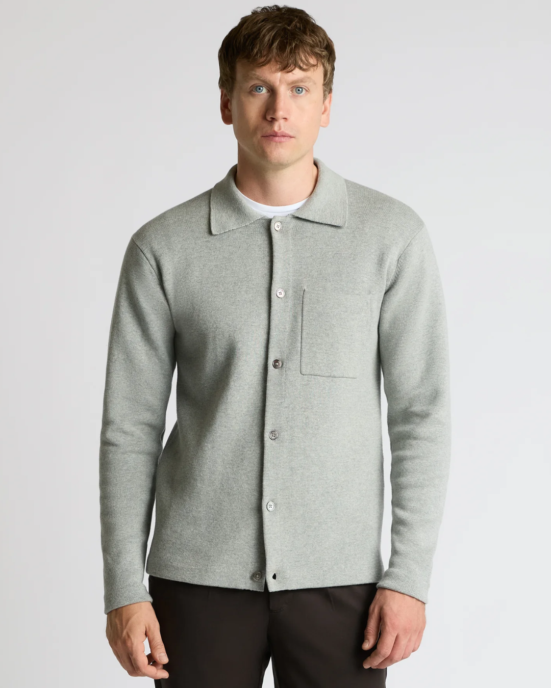 A cardigan that quietly steals the show. Crafted from cotton with a smart collar and buttoned front, this knit is finished with a single chest pocket. Perfect for layering without overthinking.