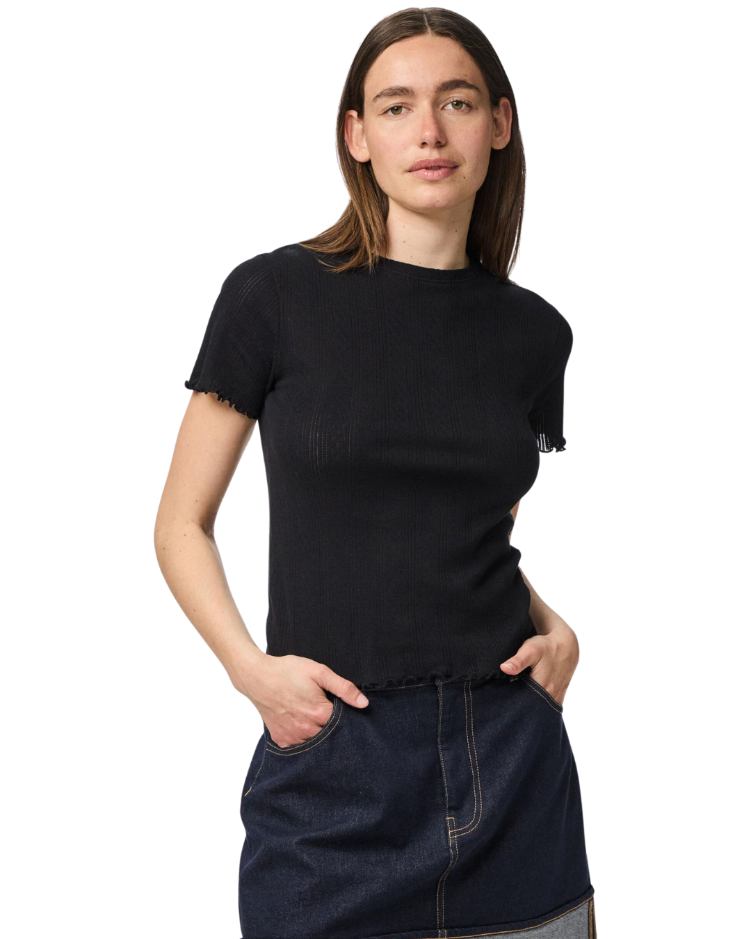 - Ribbed round neck