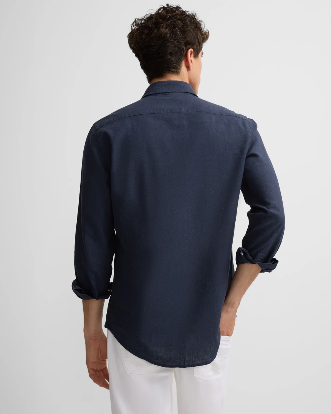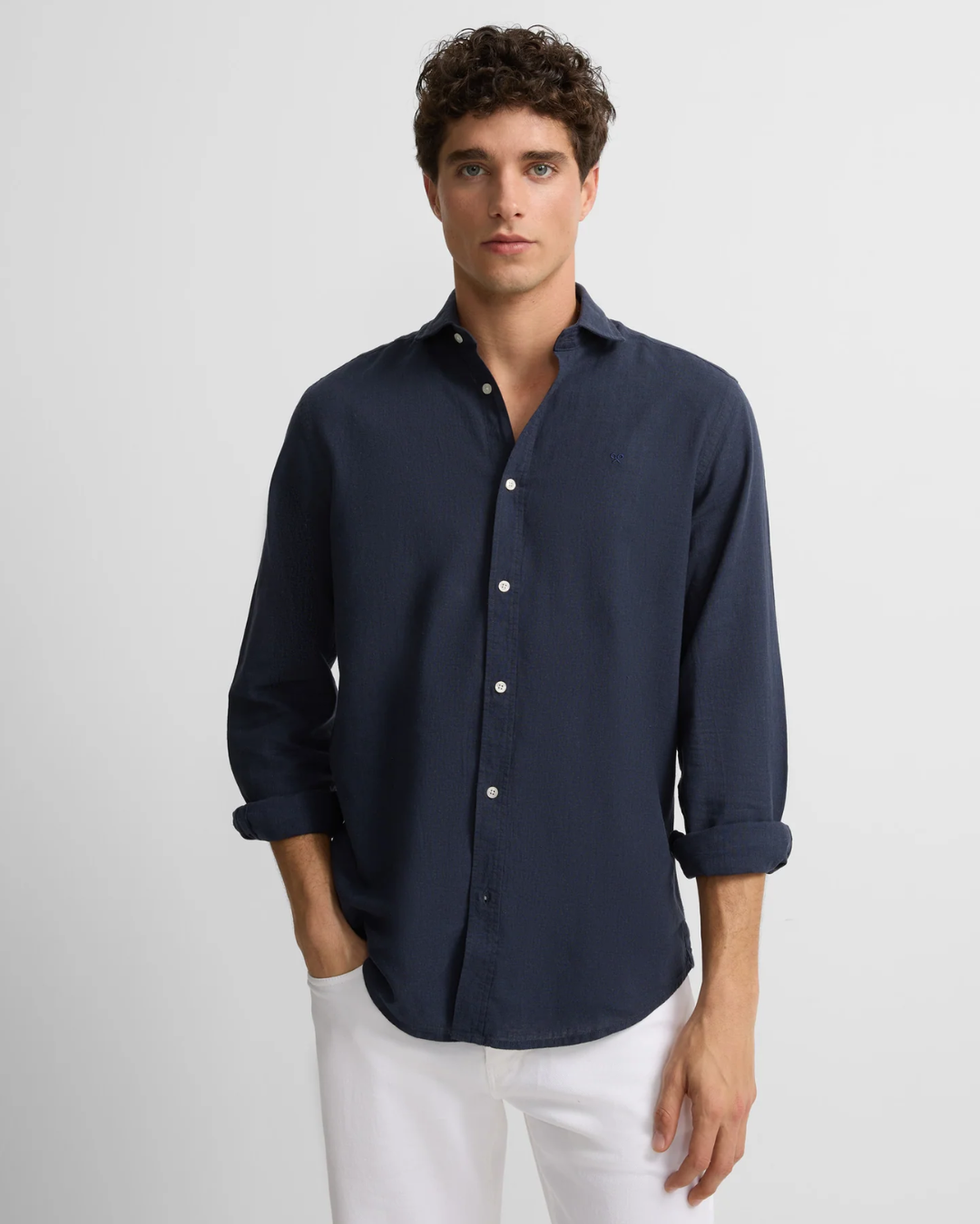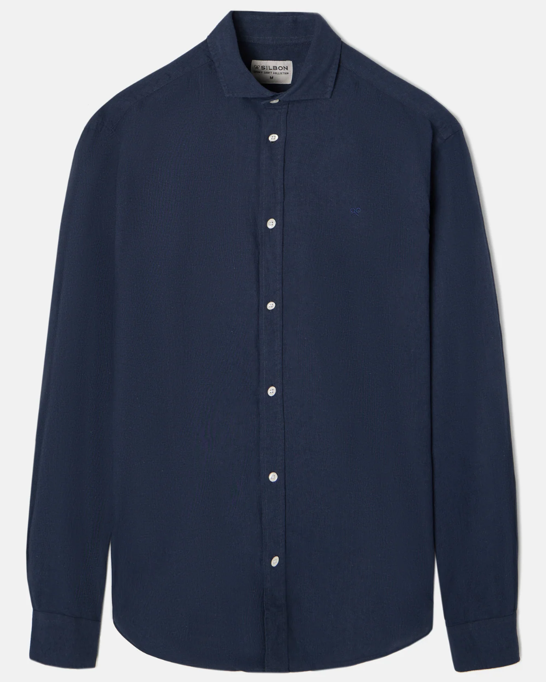 Slim-fit shirt made from a cotton and linen blend. It features a classic collar, a custom button closure, and long sleeves with buttoned cuffs. It features embroidered racquets on the torso.