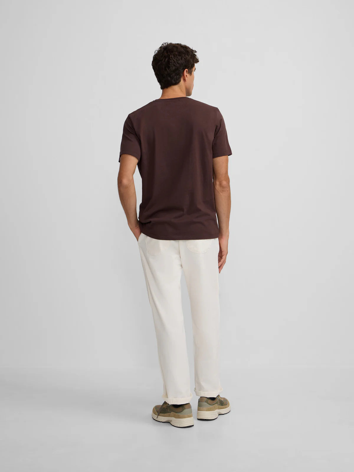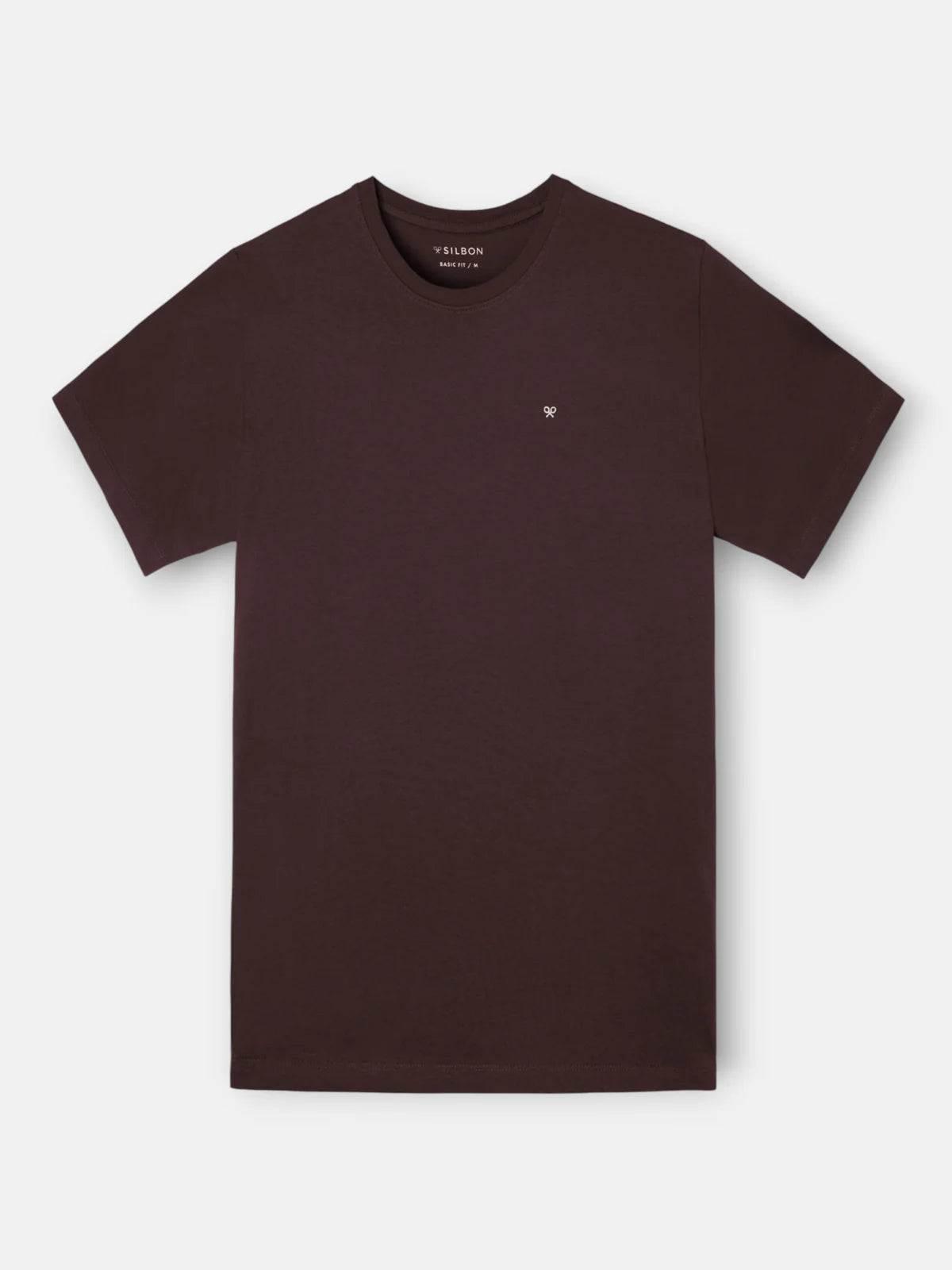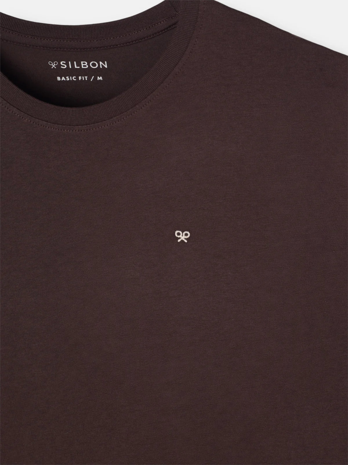 Brown short-sleeved T-shirt made of 100% cotton Regular fit. It has a round neck. It has racket embroidery on the torso in contrast in white.