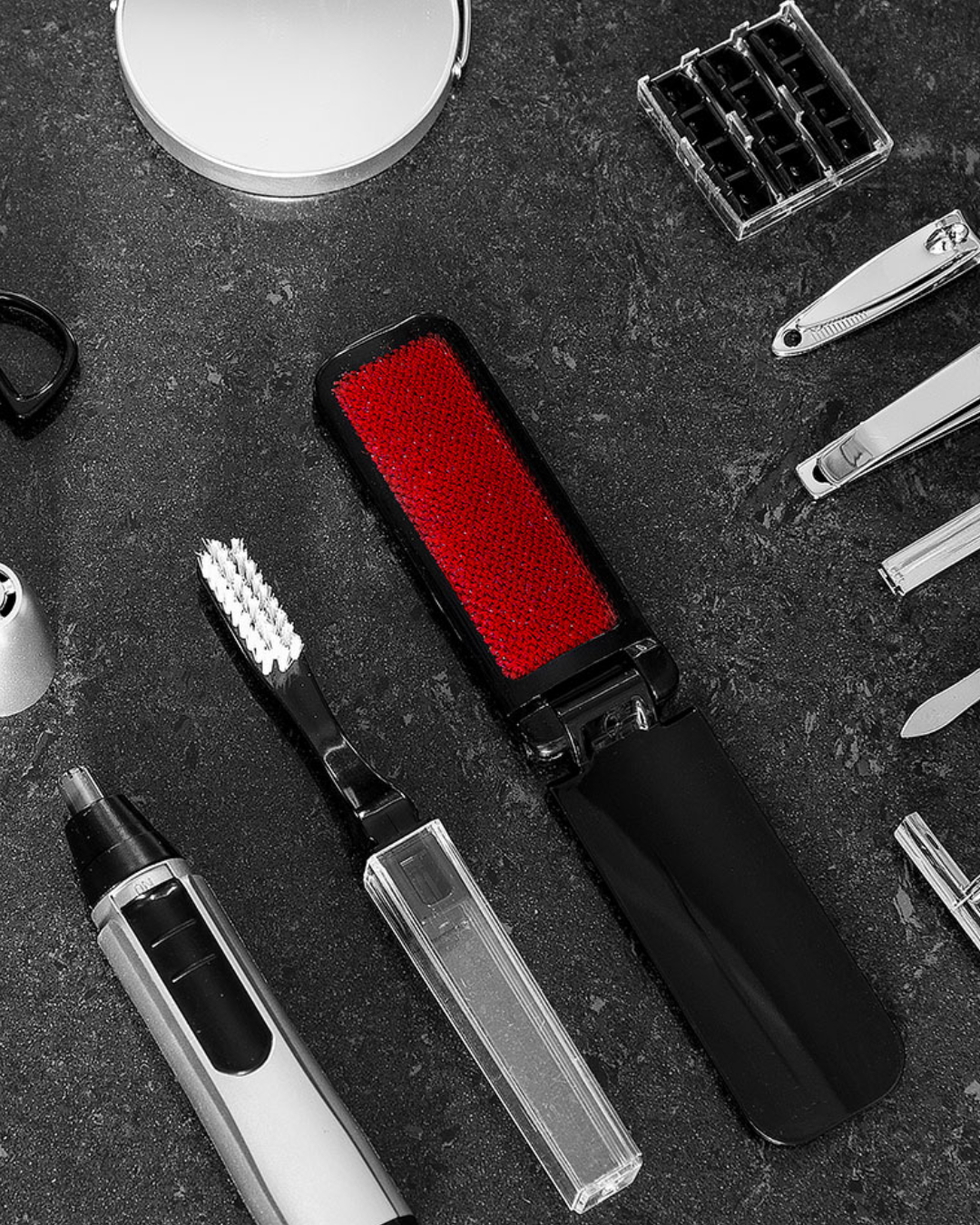 Incredible grooming kit for men. Ten different tools for maximum variety and versatility. Everything from nose hair trimmer to manicure scissors.