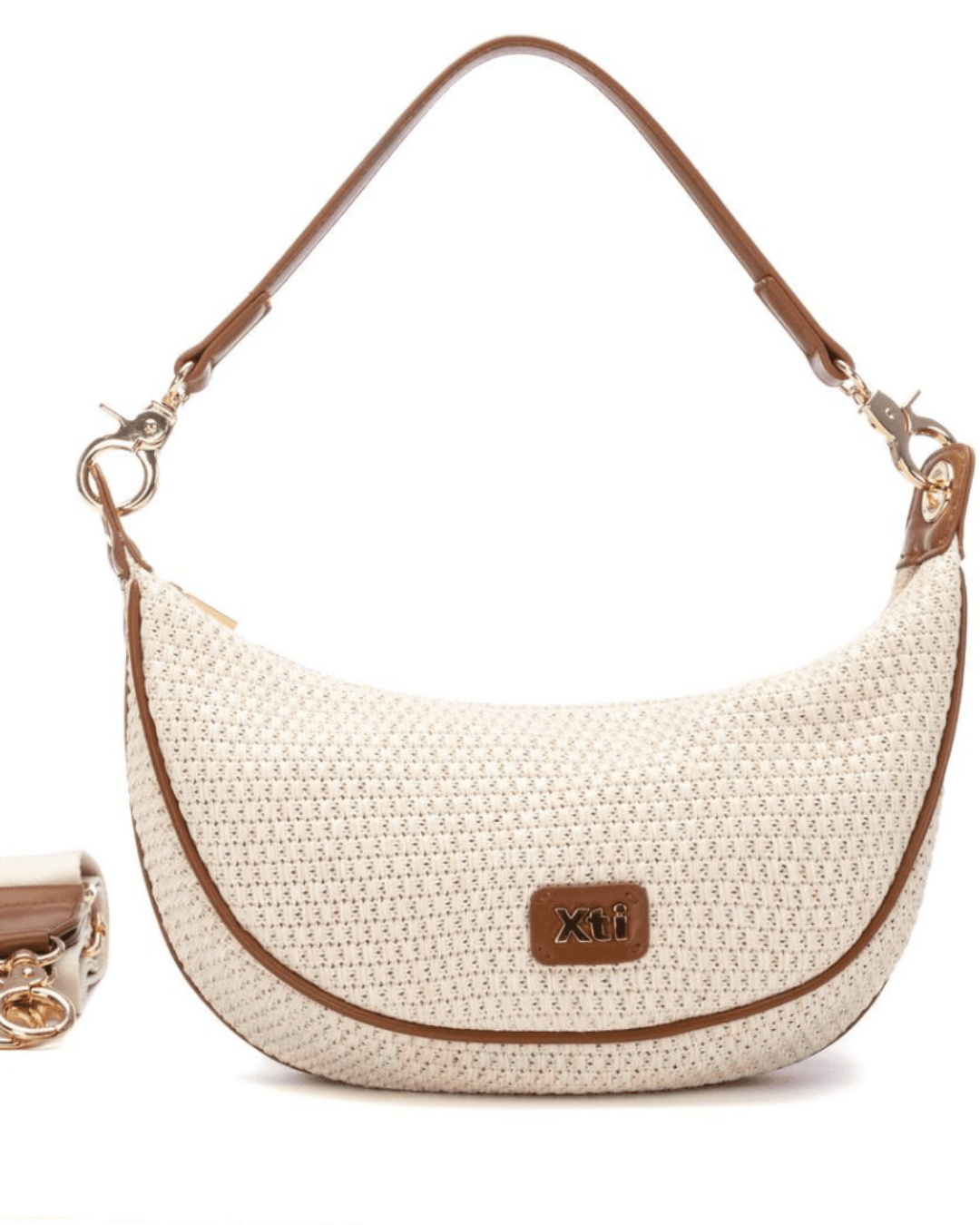The XTI shoulder bag exudes effortless summer style with its softly structured silhouette and woven-look texture. Perfectly shaped to rest under the arm, it offers just the right amount of space for daily essentials without being cumbersome. Its warm neutral hue complements casual ensembles and vacation outfits alike. A detachable strap adds versatility, letting you change up your look with ease.