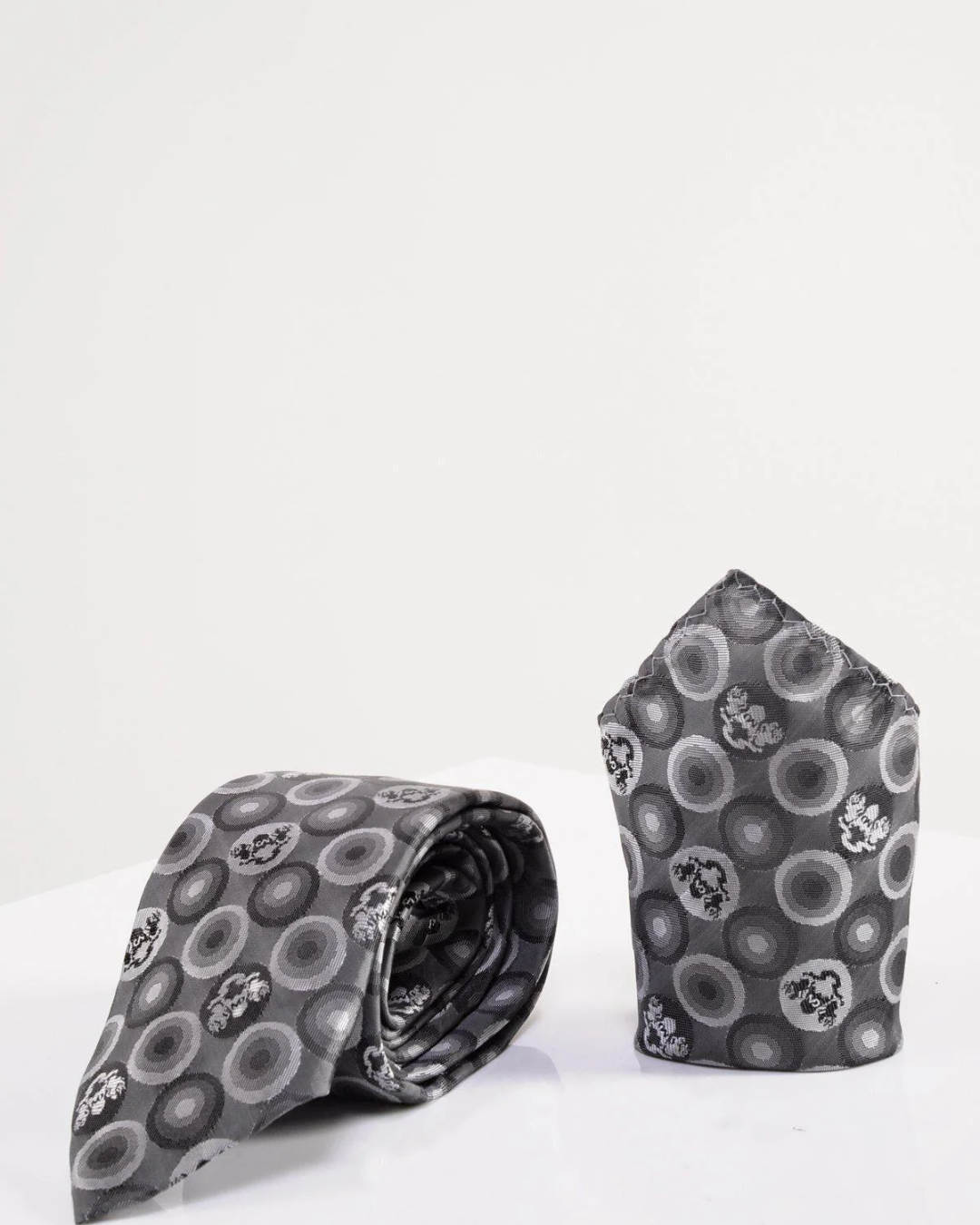 BUBBLES - Grey Bubble Circle Print Tie and Pocket Square Set