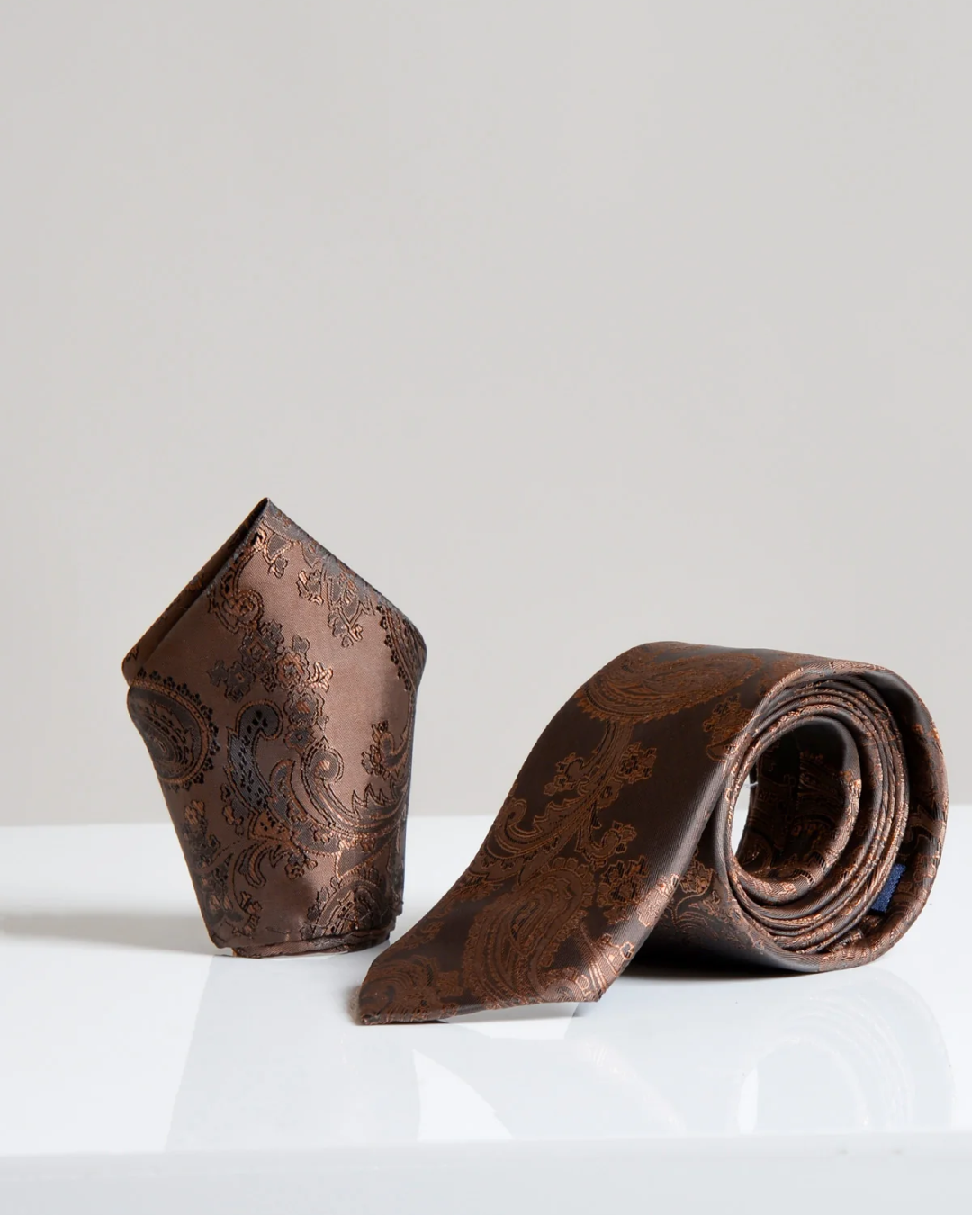 MD PAISLEY - Brown Paisley Tie and Pocket Square Set