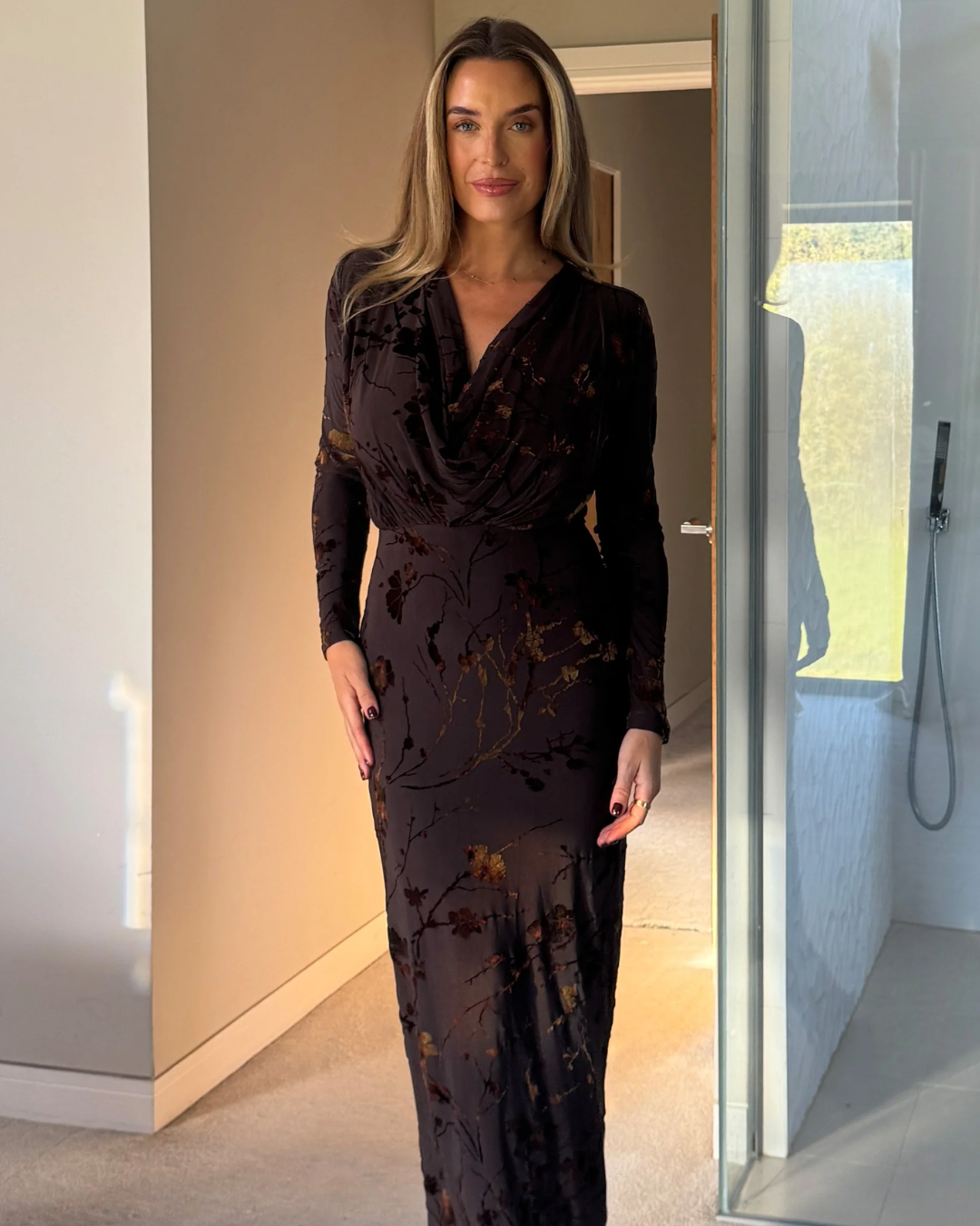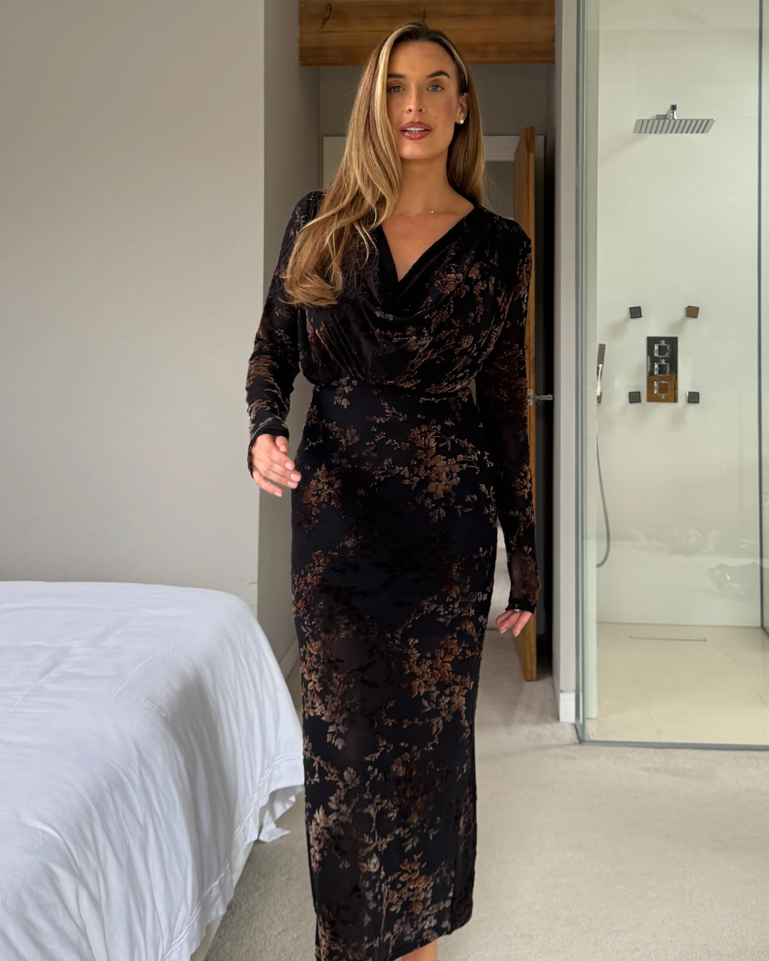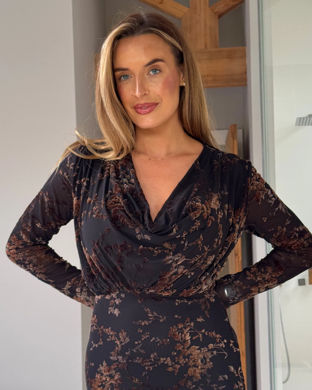 Elevate your wardrobe with the Remington Cowl Neck Midi Dress. Crafted from luxurious materials, this dress exudes elegance and sophistication with its cowl neck and textured marble design. Perfect for any occasion, from day at the office or drinks out with the girls. Pair with heels and a matching bag.
